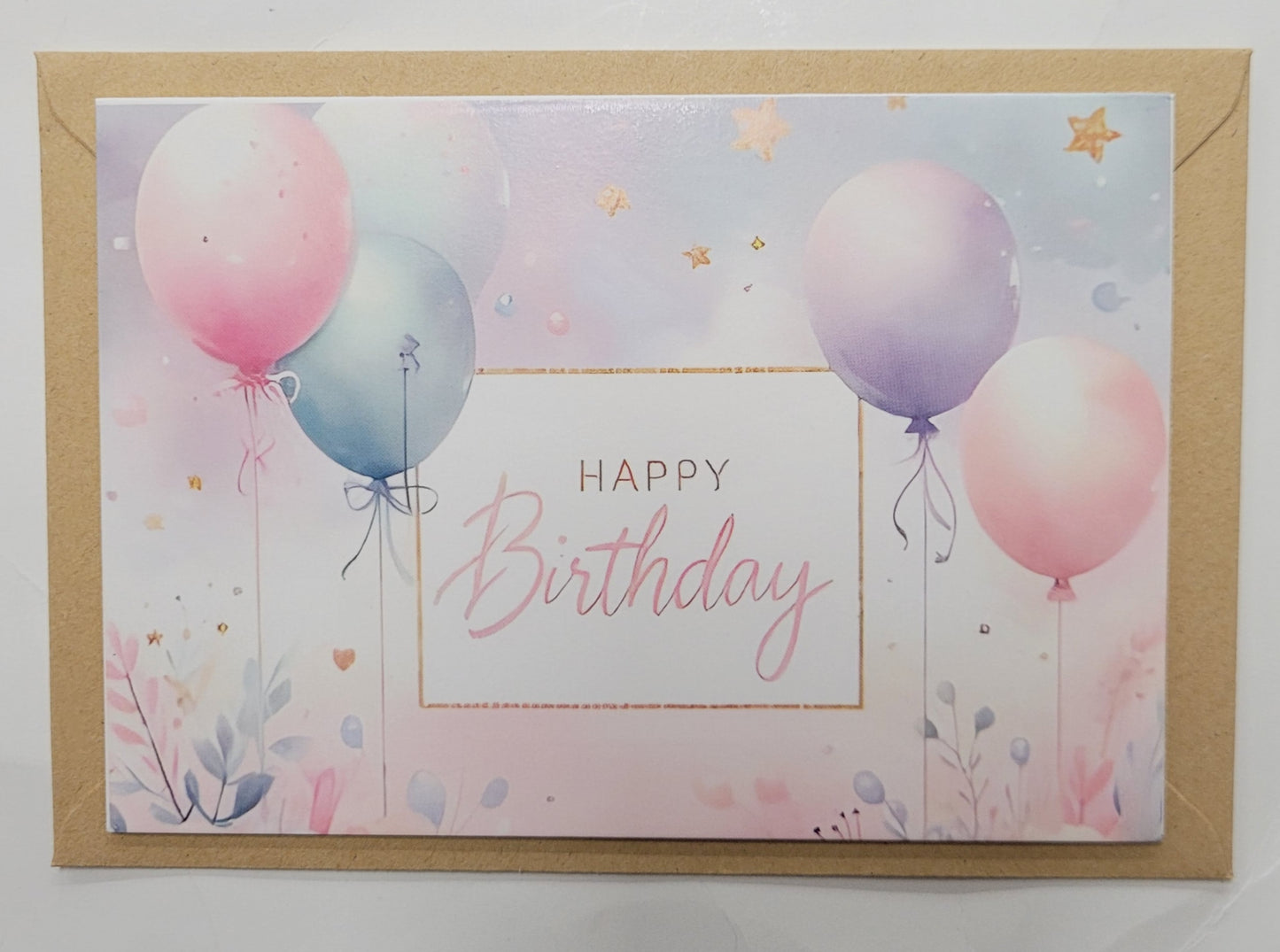 Beautiful, soft and feminine style Birthday cards featuring pastel coloured butterflies, balloons and flowers. Find the perfect card for the special lady in your life!