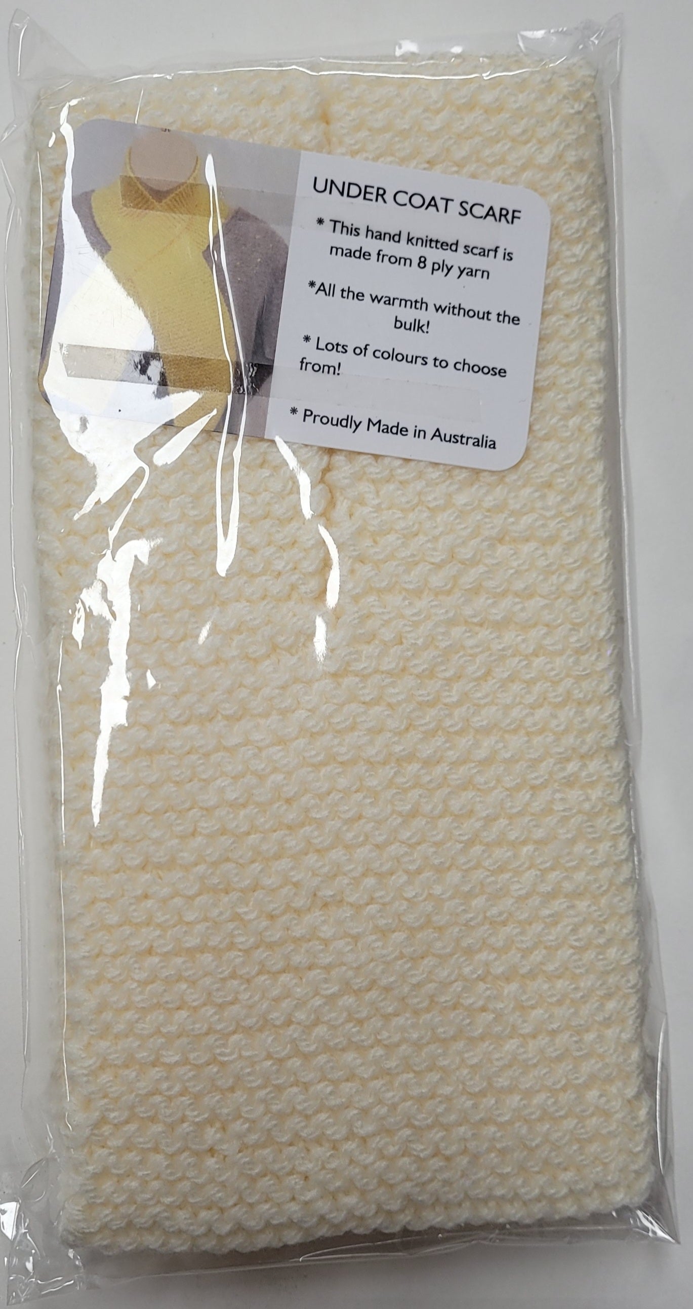Hand knitted neck scarf. The scarf is an under coat scarf. It can be worn by adults and kids.