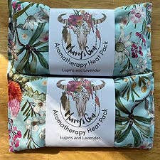 These heat packs are 51cm x 14cm They are filled with lupins, and botanicals. They are made with 100% cotton Made in the beautiful Yarra Valley. Aromatherapy heat packs.